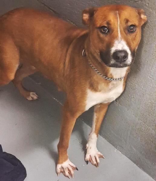 Notes: Sandy, Boxer & Shepherd Mix, Adult, Female, Medium, Golden. Friendly, Playful, Smart.